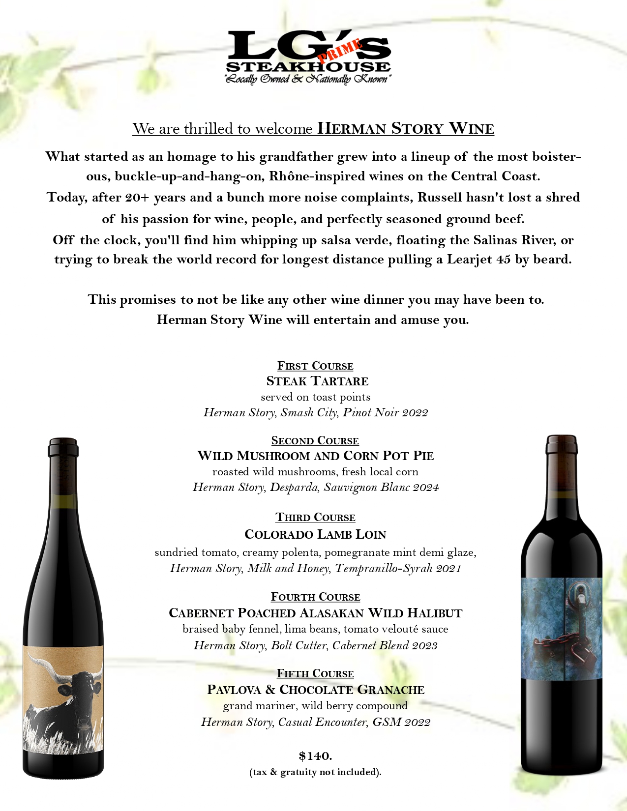 All steaks served are USDA PRIME ONLY, midwestern corn-fed beef, fresh—never frozen,